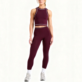 High Neck Crop Tank Top Gym Wear Sleeveless Vest Athletic 2 Piece Contrast Piping Sets Yoga Sports Suit Women Training Leggings
