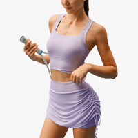 Mulheres elegantes Activewear Set Yoga Vestuário Side-tie Plissado Dupla Camada Mensh Saia Golf Pickleball Tênis Outfit